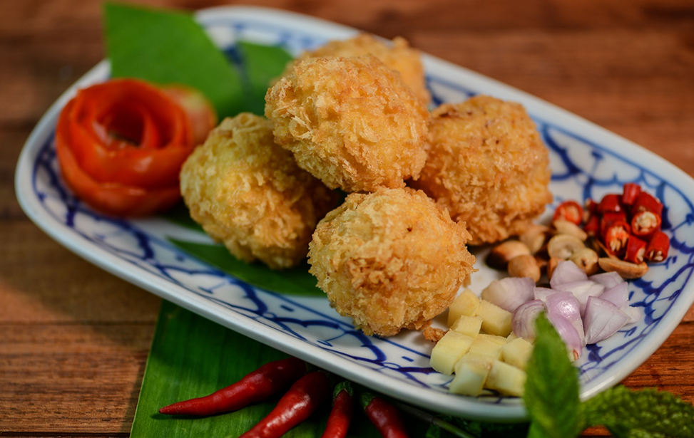 (Deep-fried fish paste ball - Fresh fish meat mixed with spicy specialty recipe and then deep fried till they are golden brown; served with sweet and chili cucumber sauce.