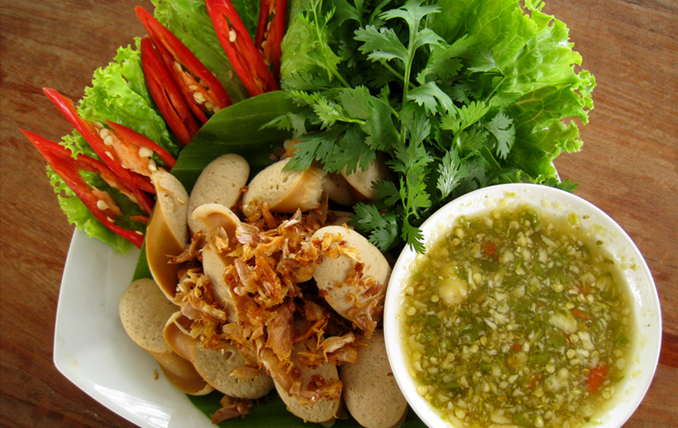 Steamed fish sausage dipped with Thai spicy dipping sauce.