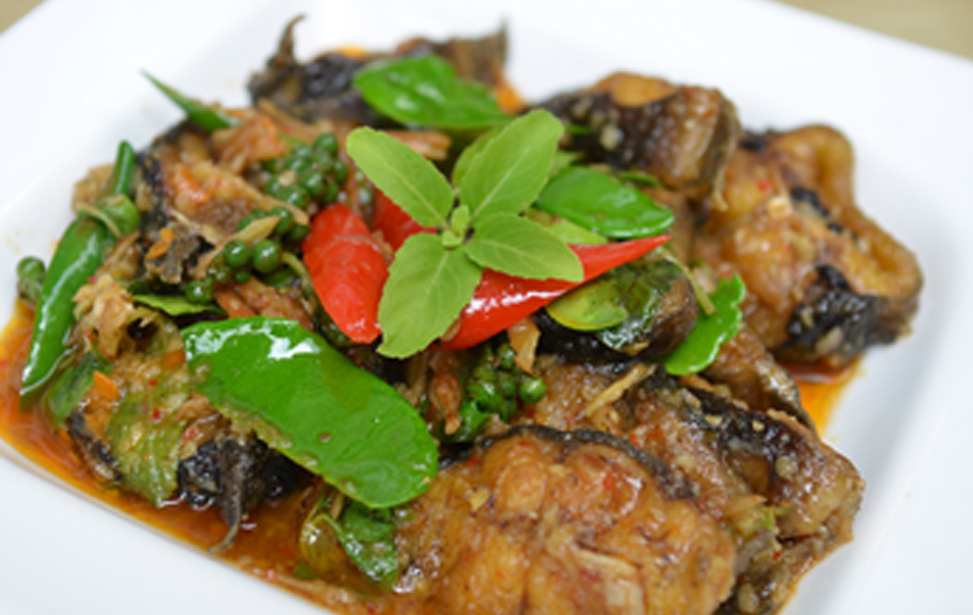 NewStir-fried crispy cat fish with Thai herb spicy chili sauce. (อันนี้พ่อชอบทำให้กินบ่อยหอมเครื่องเทศและพริกแกง กินกับข้าวร้อนๆอร่อยเหาะ)