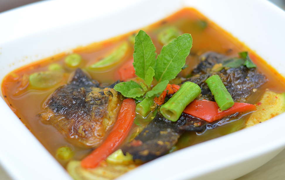 Your selection of meat (chicken or clown feather back ball) in jungle curry. (180 บาท สำหรับ ไก่ / 200 บาท สำหรับปลากราย)