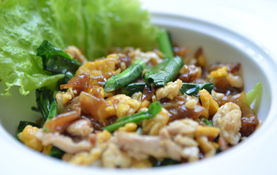 Stir-fried fresh rice noodle with chicken - Thai famous stir fired flat noodle with egg and chicken. Their taste is unbelievebale good.