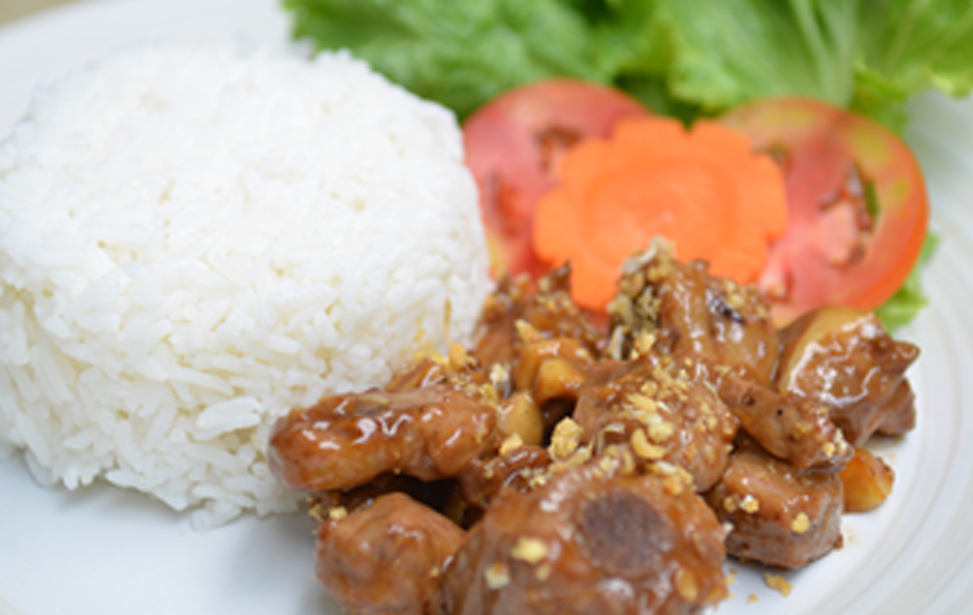Stir-fried pork or pork spare rib with garlic and pepper sauce served with steamed or brown rice.