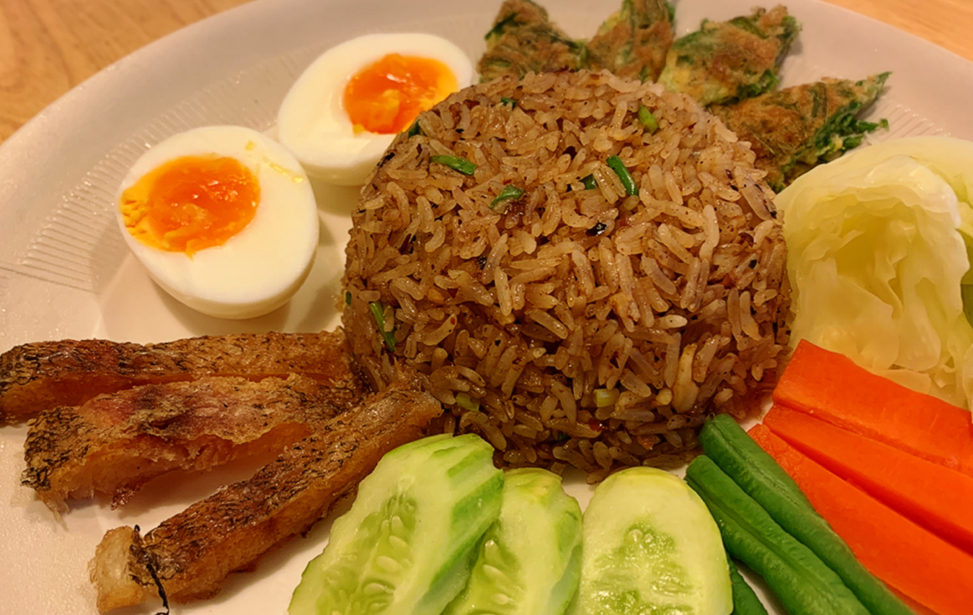 Steam or brown rice stir fried with Fried Gourami and Boiled eggs.