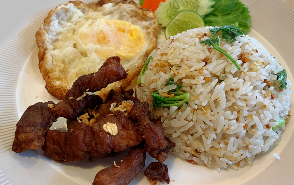 Garlic Fried Rice with sundried pork served with sunny side up egg.