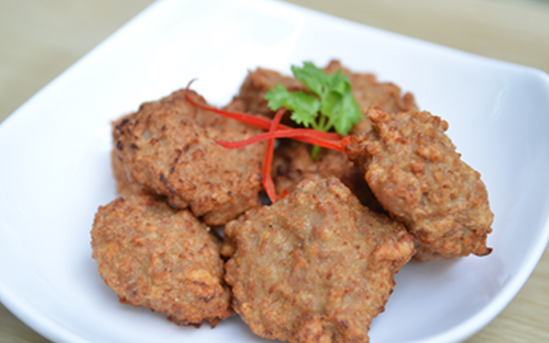● หมูสามชันหมักน้ำปลา ชุบแป้งทอด