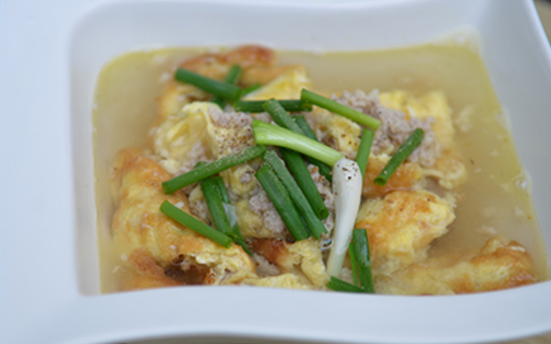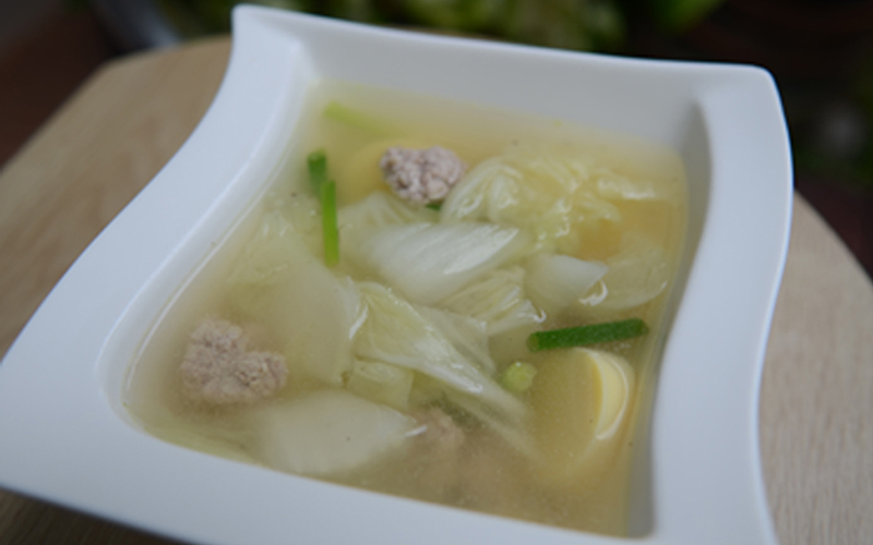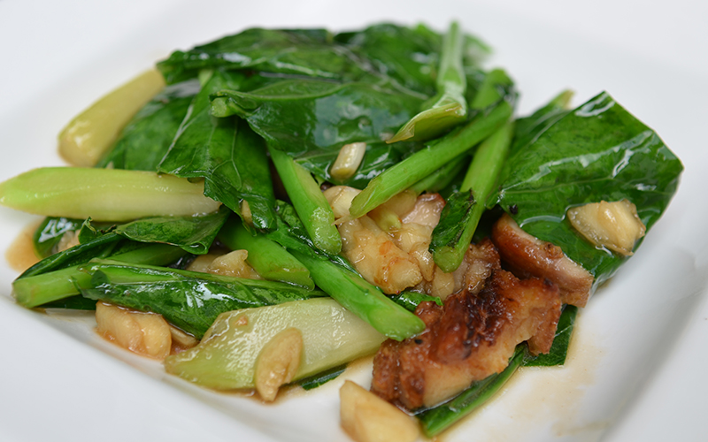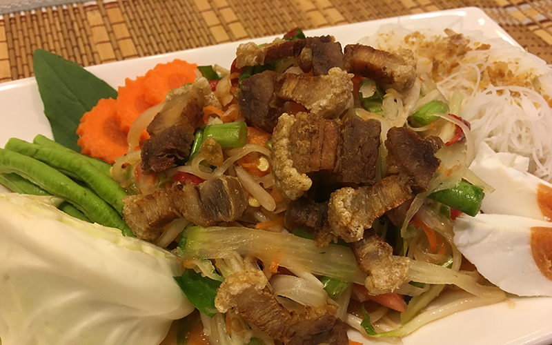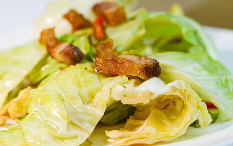 ● กะหล่ำปลีฉ่าน้ำปลา หมูกรอบ