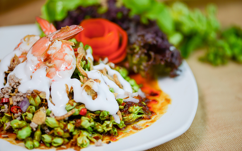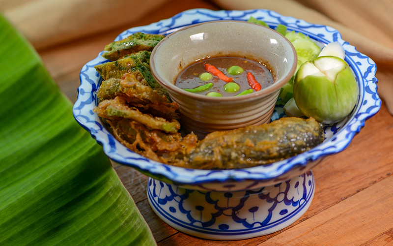 ● น้ำพริกปลาทู ชะอมทอดผักสด