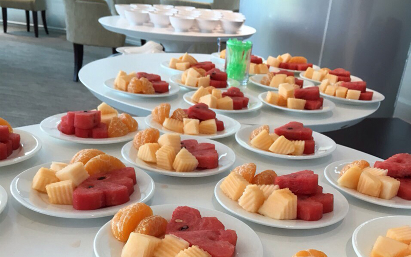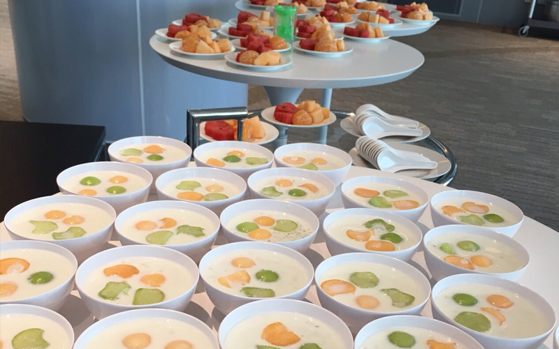 1. รายการบุฟเฟ่ต์เสริฟพร้อม ข้าวหอมมะลิ หรือ ข้าวกล้อง, น้ำเย็น และ ผลไม้ 3 อย่าง
