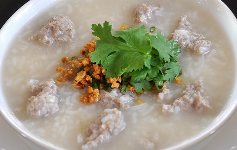 Minced pork in rice soup.