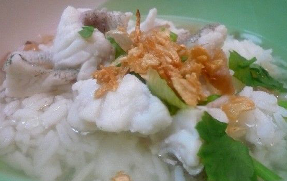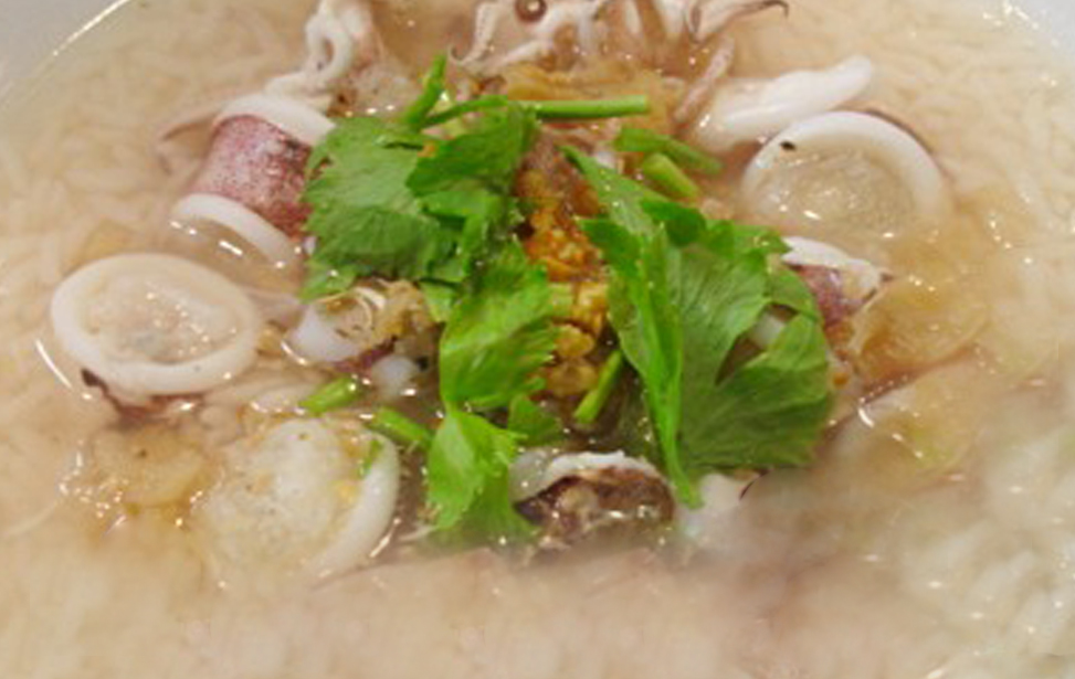 Squid in rice soup.