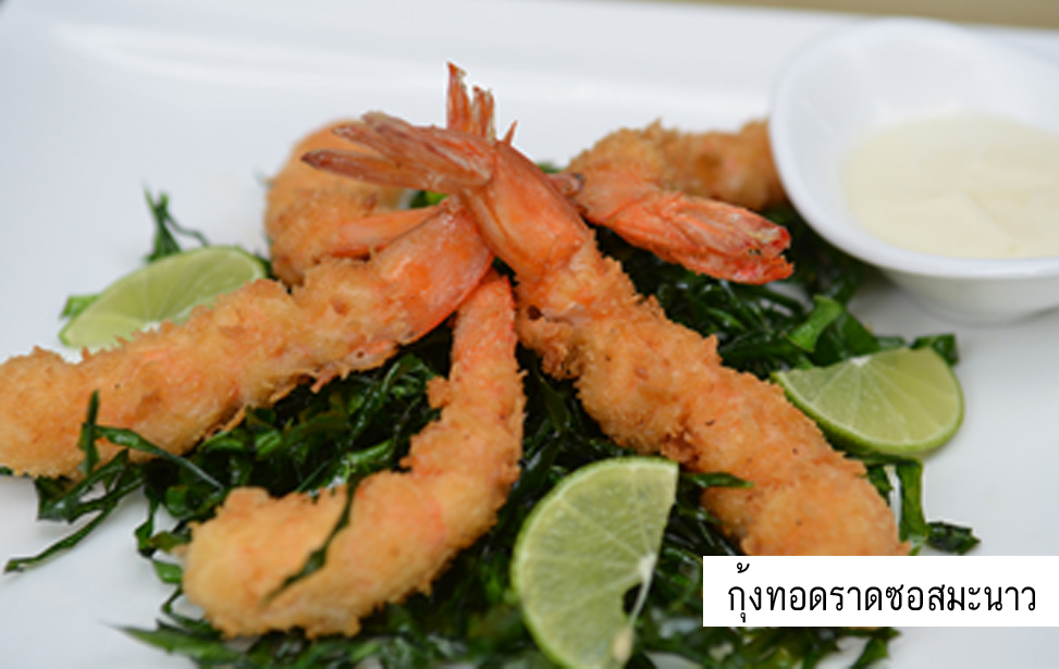 - กุ้งทอดราดซอสมะนาว