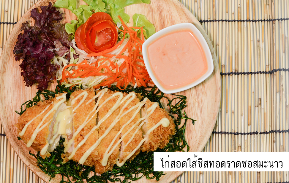 - ไก่สอดไส้ชีสทอดราดซอสมะนาว *