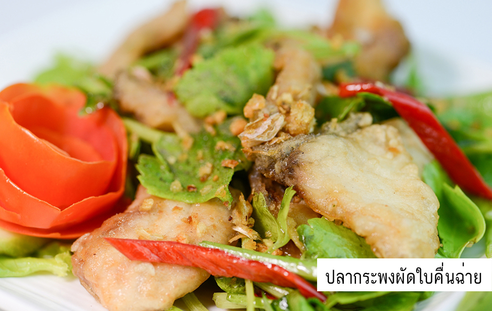 - ปลากระพงผัดใบคื่นฉ่าย *