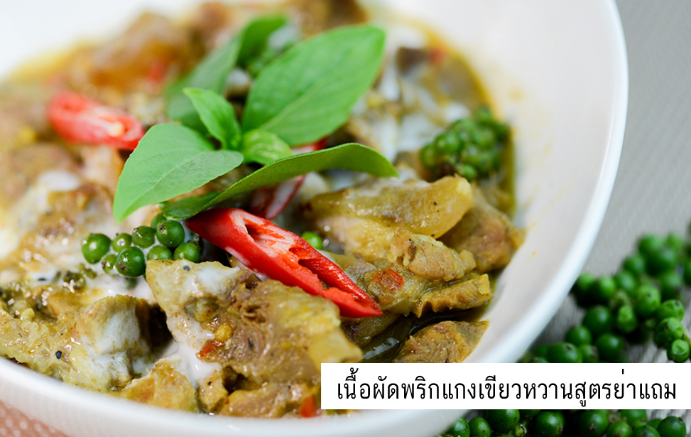 - เนื้อผัดพริกแกงเขียวหวานสูตรย่าแถม