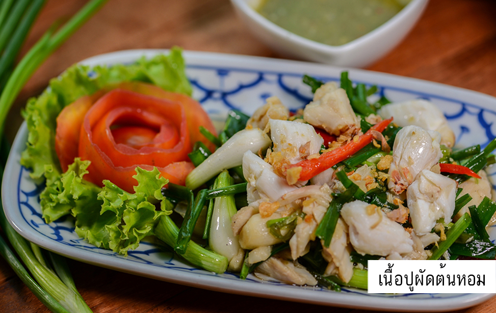 - เนื้อปูก้อนผัดต้นหอม *