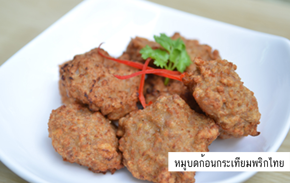 - หมูบดก้อนกระเทียมพริกไทย