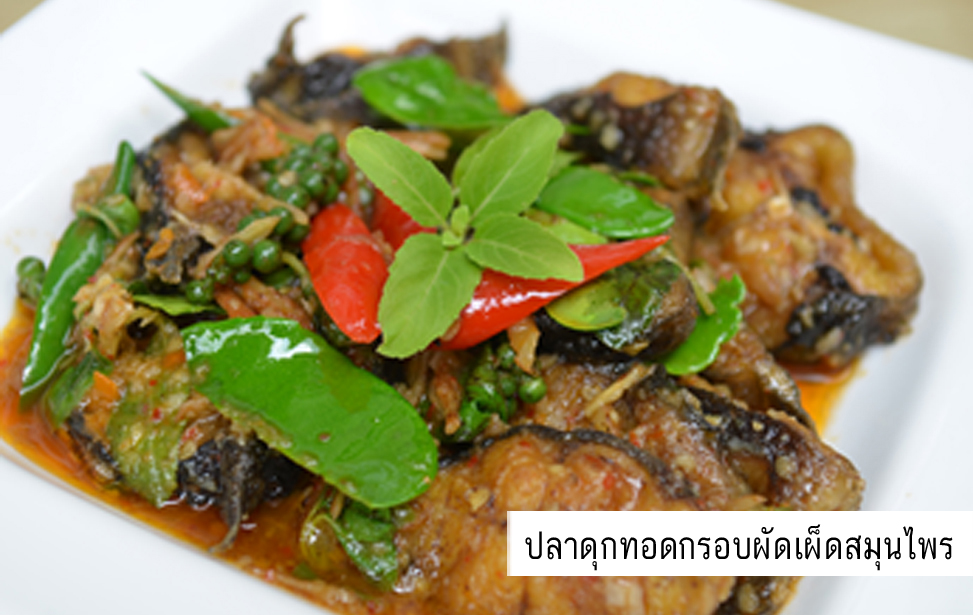 - ปลาดุกทอดกรอบผัดเผ็ดสมุนไพร *