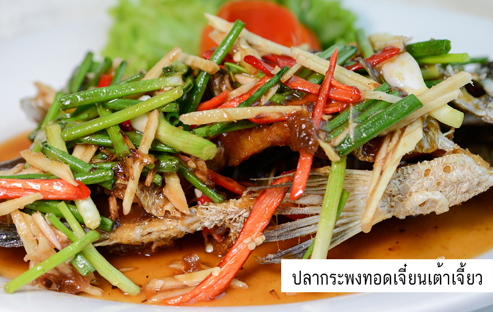 - ปลากระพงทอดน้ำปลา น้ำยำมะม่วง