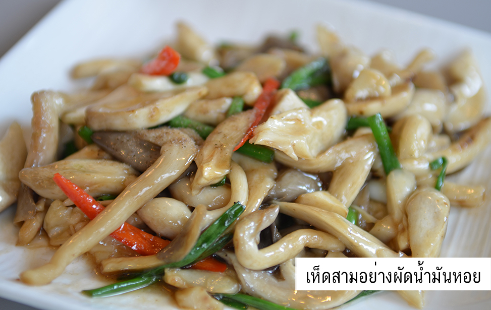 - เห็ดสามอย่างผัดน้ำมันหอย